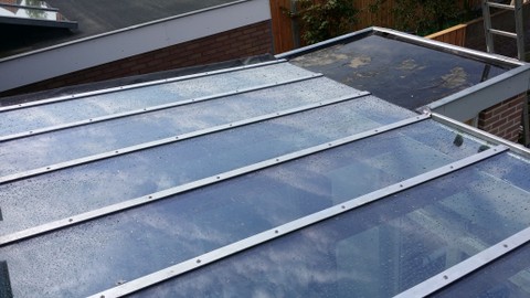 De onderstaande foto's zijn van een anbouw die wij hebben gerealiseerd die voorzien is van een glazen dak en waarbij wij een gevelzijde hebben uitgevoerd met douglas zweeds rabat betimmering in plaats van gevel stenen.
