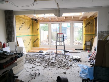 Volledige verbouwing van een woonhuis incl een uitbouw van 3,5 meter diep met lichtstraat.